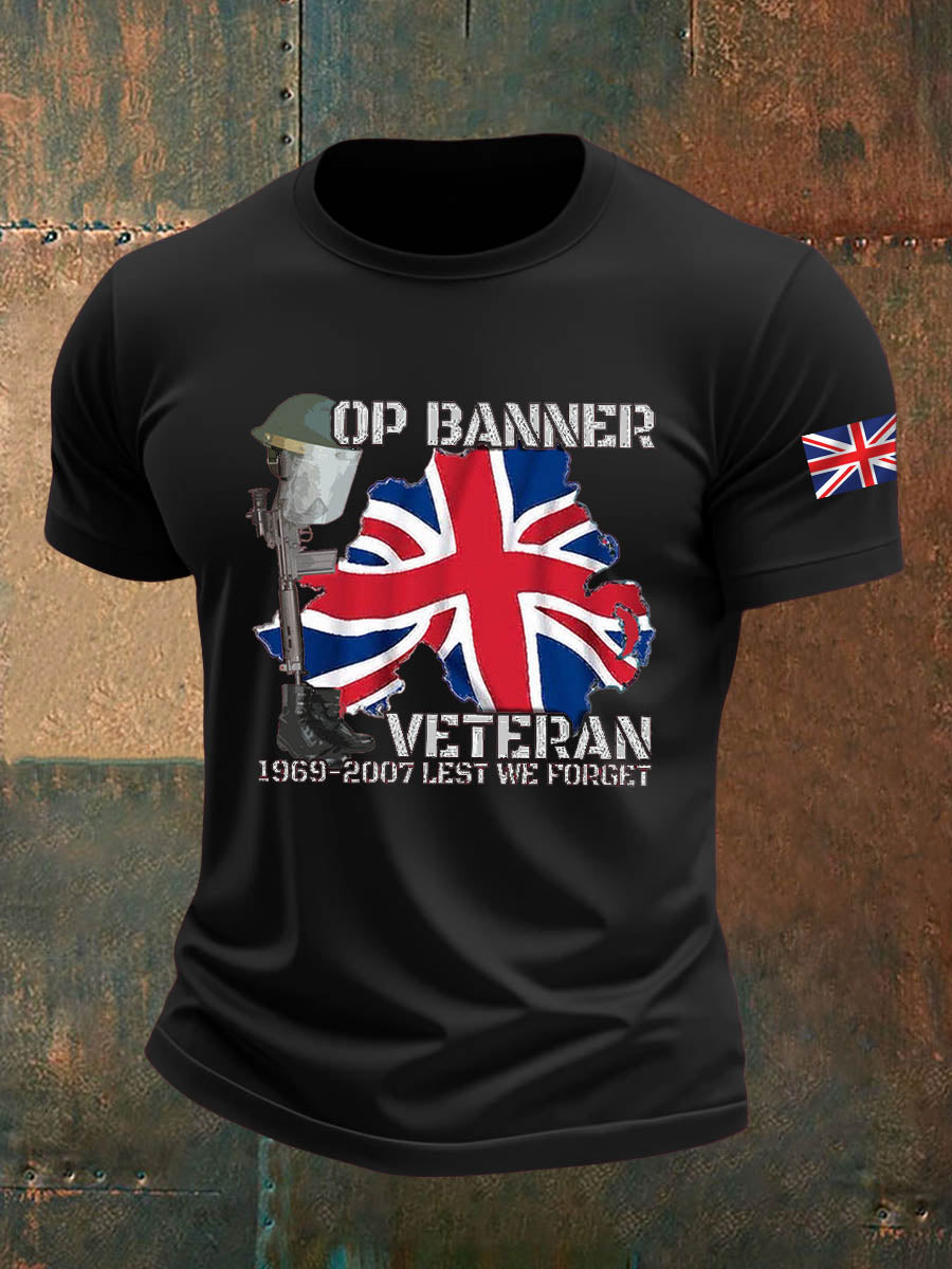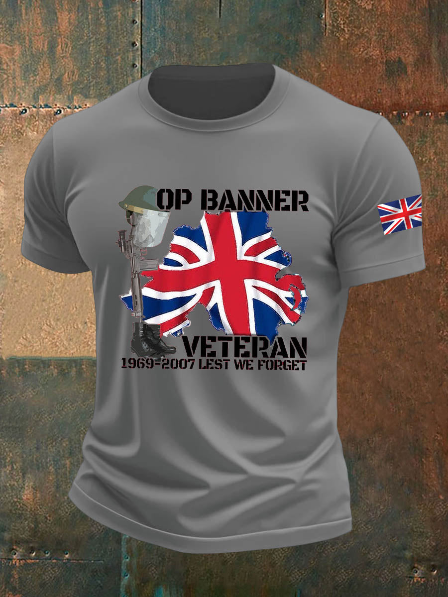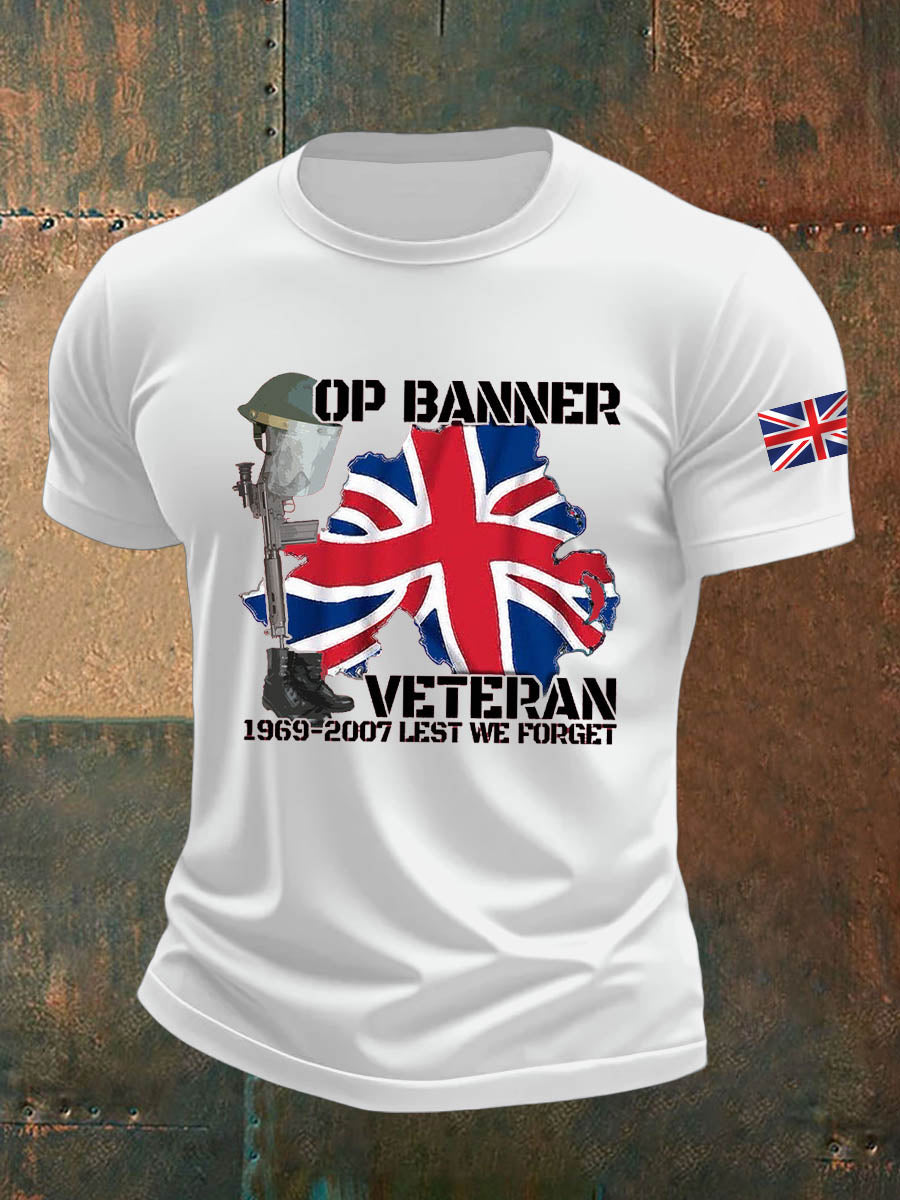 Men's British Veteran Imitation Cotton Short-Sleeved Printed T-shirt