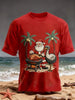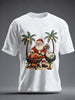 Men's Vintage Tropical Santa Claus Print Christmas Tee