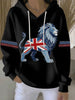 Women's British style imitation denim rhinestone hot-drill Print Casual Hoodie