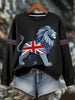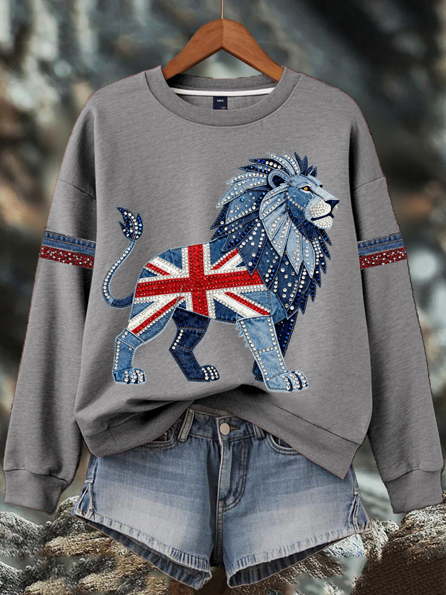 Women's British style imitation denim rhinestone hot-drill Print Sweatshirt