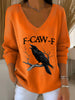 Women's Crow F-Caw-F V-neck Long-sleeved Top