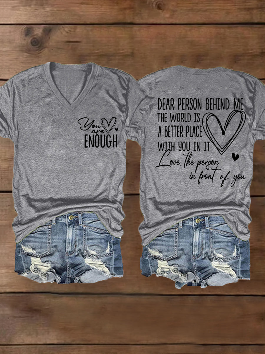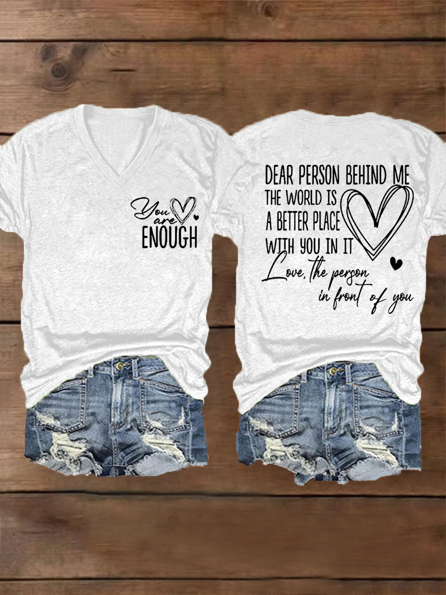 Women's Dear Person Behind Me, You Are Amazing Beautiful Enough Mental Health Matters V-Neck Tee
