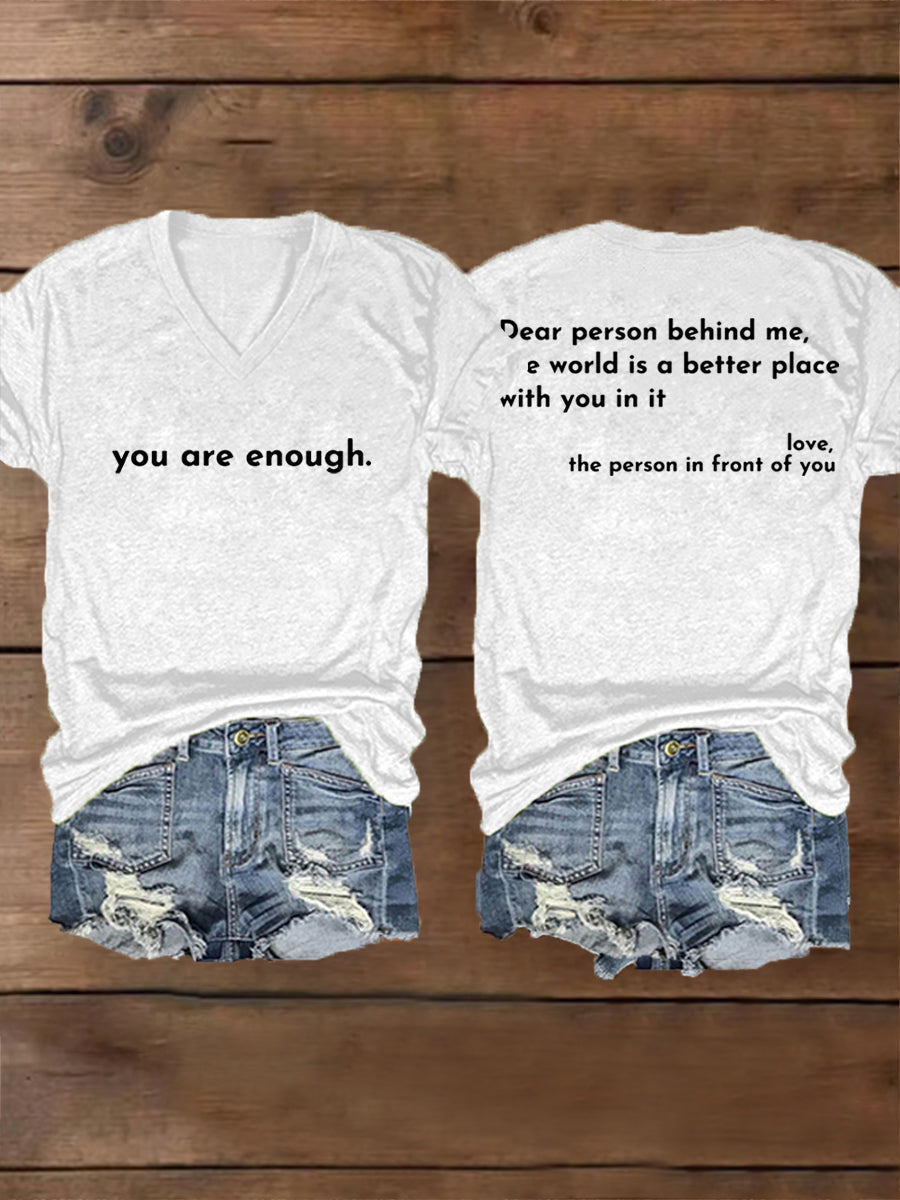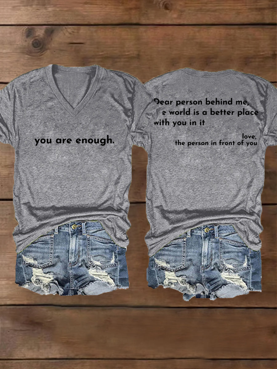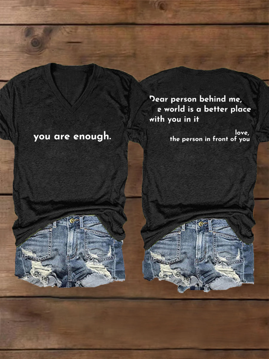 Women's Dear Person Behind Me, You Are Enough Mental Health Matters V-Neck Tee
